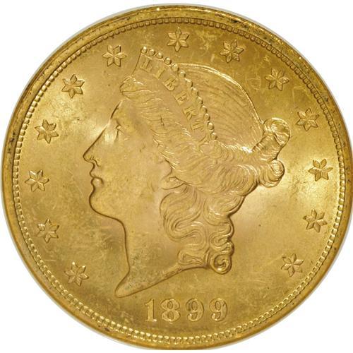 1899 $20 MS63 NGC. NGC Census: (3317/831). PCGS Popula