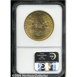 <B>1899<$20> MS63 NGC.</B></I> Sharply struck with peach-gold lustrous surfaces. A few moderate contact marks on Liberty's face limit the grade on this pleasing double eagle. <BR><BR><B>Important notice:</B> Heritage usually auctions material at the rate of 200-250 lots per hour. On some occasions eBay Live bid software or the Internet may not be able to keep up with the pace of the auction. We recommend placing a realistic absentee bid now as insurance to avoid disappointment. Occasionally the auctioneer may eliminate or reject an eBay Live bid, and the auctioneer may also reopen a lot after the close of the eBay live bidding (usually because we missed an audience bid), and may reject your bid even if it shows you as the winning bidder. By bidding via eBay Live, you agree that Heritage may award the lot to another bidder at its sole discretion under the circumstances described above or any other reasonable circumstances. Since eBay bids are not shown to us until we open the lot on the floor, we treat those bids just like floor bids. In most cases the floor responds before the eBay bid is presented to us, due to Internet lag time, so for consistency we have made it a policy that floor bids are always considered first over tie eBay live bids. Also please note that all Heritage lots purchased through eBay Live carry a 20% Buyer's Premium. Please make sure you read the Terms and Conditions before you bid.