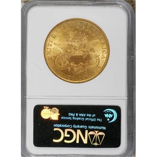 <B>1899 $20 MS63 NGC.</B></I> NGC Census: (3390/889). PCGS Population (1413/302). Mintage: 1,669,384. Numismedia Wsl. Price for NGC/PCGS coin in MS63: $935. (#9035)<BR><BR><B>Coin Engraver:</B> James B. Longacre<BR><BR><b>Shipping:</b> Coins & Currency (<a target="_blank" href="http://www.heritageauctions.com/common/shipping.php">view shipping information</a>)