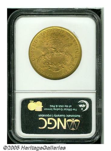 <B>1899<$20> MS64 NGC.</B></I> Sharply struck and lustrous, with attractive, rather deep coloration, and minor luster grazing on Liberty's cheek which is very superficial, yet seems to prevent the Gem grade assessment.<BR><I>From the Dr. Kurt Peters Collection.</B></I> From the Dr. Kurt Peters Collection.