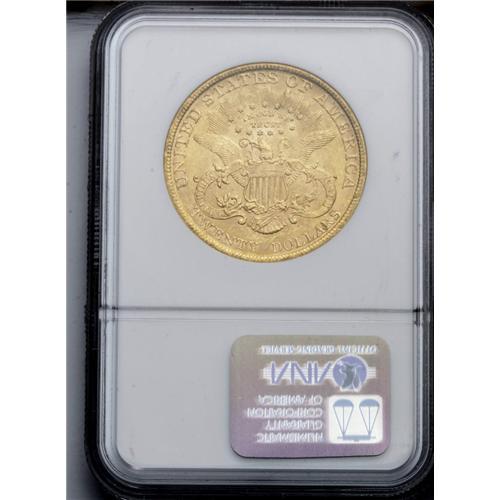 <B>1899<$20> MS64 NGC.</B></I> Well struck and highly lustrous with matte-like surface textures and lovely rose-gold coloration. A diagonal pinscratch-like abrasion is noted across the lower half of the shield.