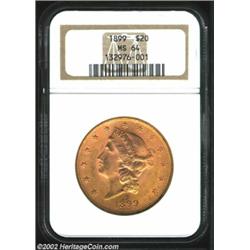 1899 $20 MS64 NGC. Well struck and lustrous. A small abrasion is noted near the U in UNITED, and the