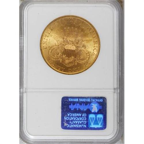 <B>1899 $20 MS64 NGC.</B></I> A crisply struck and eminently appealing example of this late 19th century issue, apricot-gold with soft but pleasing luster. A few wispy marks appear on the devices and in the fields, but the overall visual appeal is strong.<BR><BR><B>Coin Engraver:</B> James B. Longacre<BR><BR><b>Shipping:</b> Coins & Currency (<a target="_blank" href="http://www.heritageauctions.com/common/shipping.php">view shipping information</a>)