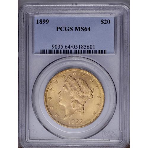 <B>1899<$20> MS64 PCGS.</B></I> A lustrous olive-gold representative with only a few faint grazes in the fields to preclude a finer grade. PCGS has certified a mere eight pieces finer, as of (4/06).