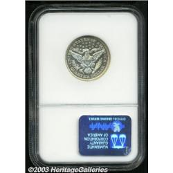 1899 25C PR65 NGC. Fully struck and deeply reflective, with lovely golden-yellow and sea-green colors. A small u-shaped lintmark (as struck) rests in the lower right obverse field. The coin comes close to showing mentionable cameo contrast. A lovely Gem, with excellent eye appeal. Population: 24 in 65, 42 finer (11/03). Important notice: Heritage usually auctions material at the rate of 200-250 lots per hour. On some occasions eBay Live bid software or the Internet may not be able to keep up with the pace of the auction. We recommend placing a realistic absentee bid now as insurance to avoid disappointment. Occasionally the auctioneer may eliminate or reject an eBay Live bid, and the auctioneer may also reopen a lot after the close of the eBay live bidding (usually because we missed an audience bid), and may reject your bid even if it shows you as the winning bidder. By bidding via eBay Live, you agree that Heritage may award the lot to another bidder at its sole discretion under the circumstances described above or any other reasonable circumstances. Also please note that all Heritage lots purchased through eBay Live carry a 20% Buyer's Premium. Please make sure you read the Terms and Conditions before you bid.