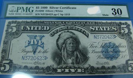 1899 $5.00 Silver Certificate Fr #280 Elliot/White Mule PMG VF30