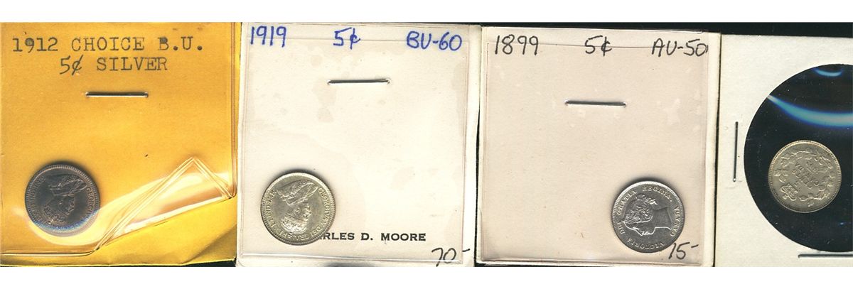 1899 5¢, 1902H, 1912 & 1919. Lot of 4 coins all AU or better. All with lustre.