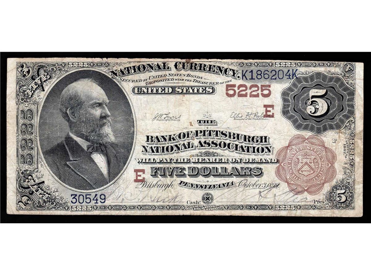 One 1899 $5 Bank of Pittsburgh National Association Currency Note.