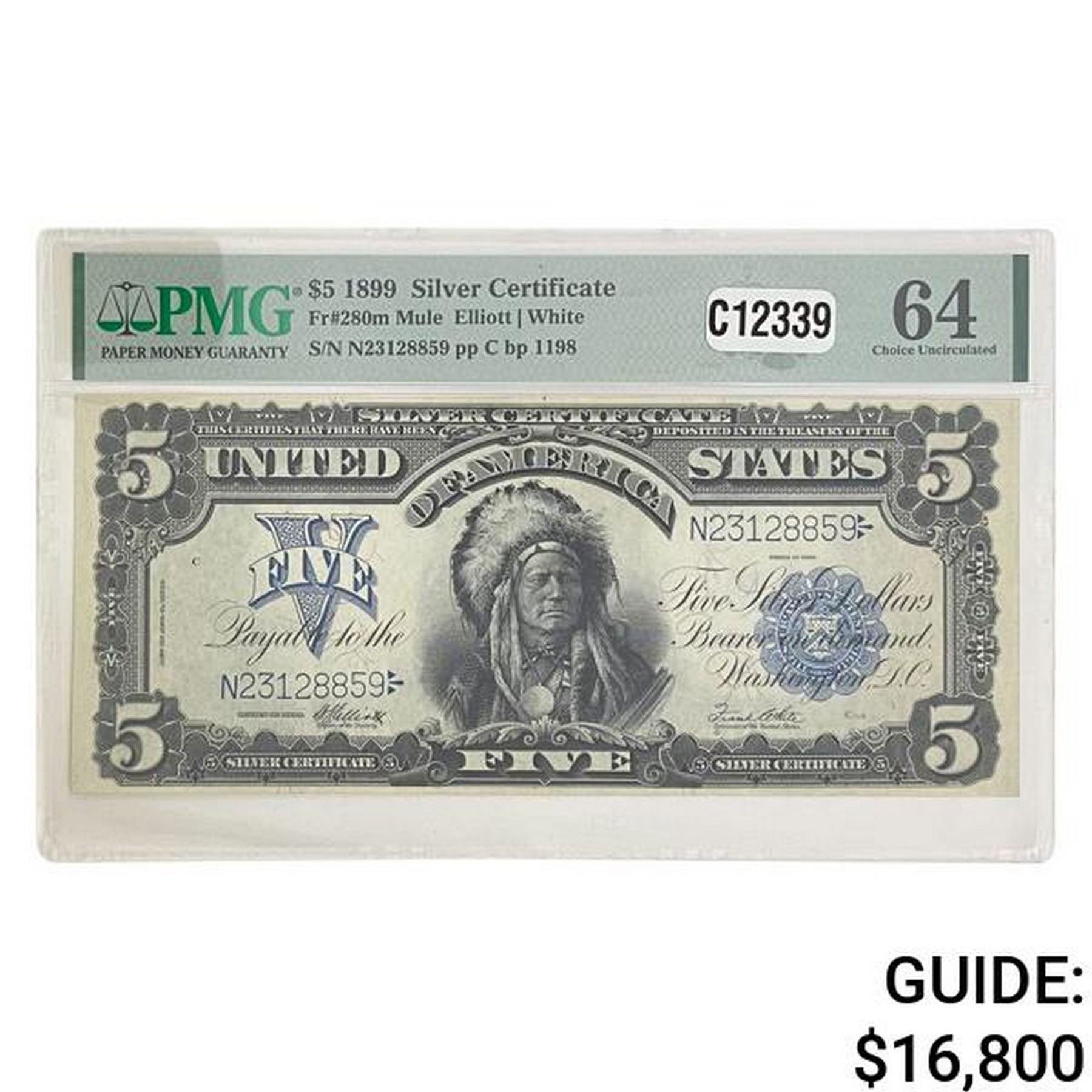 1899 $5 "CHIEF" SILVER CERT PMG UNCIRCULATED-64