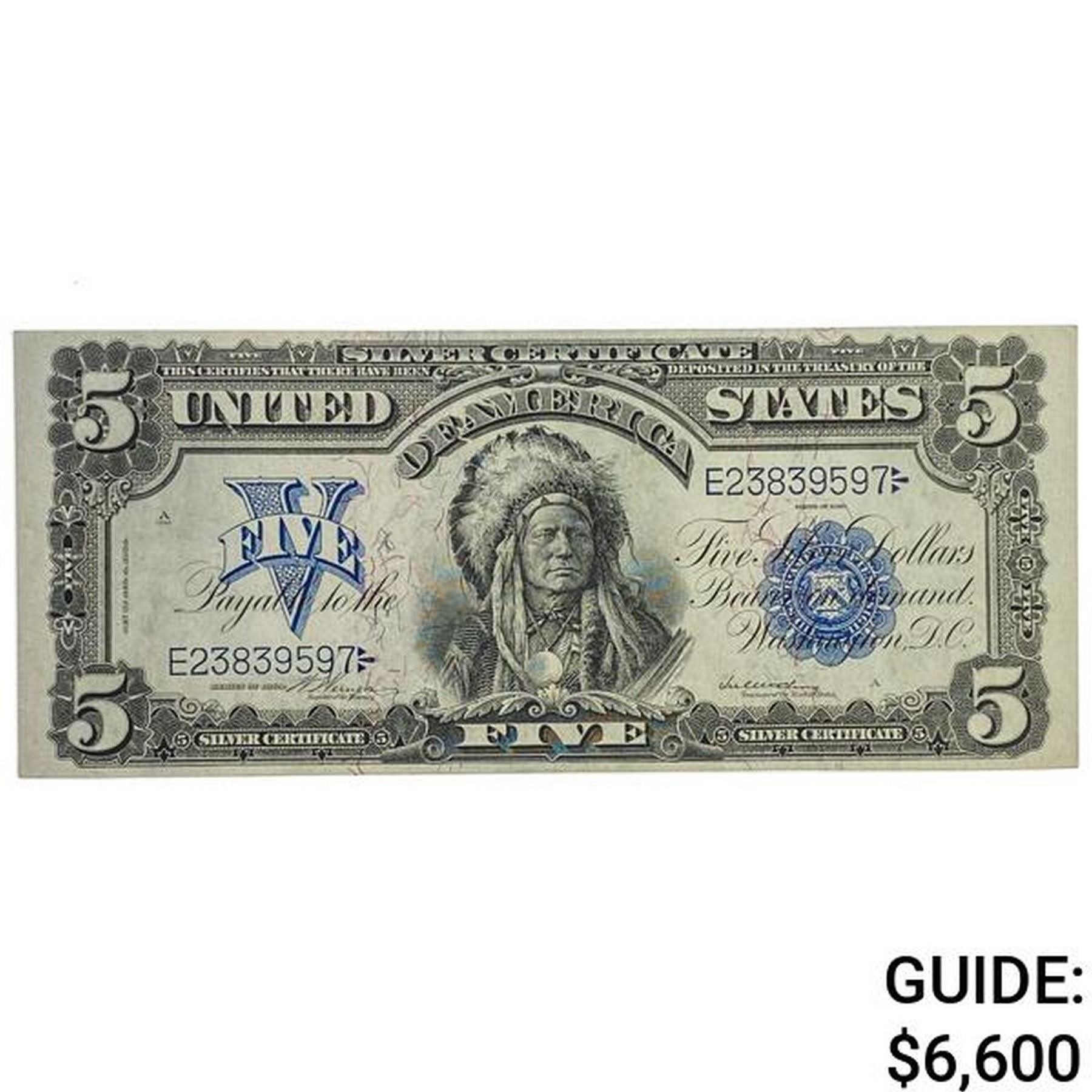 1899 $5 "CHIEF" SILVER CERTIFICATE ABOUT UNC