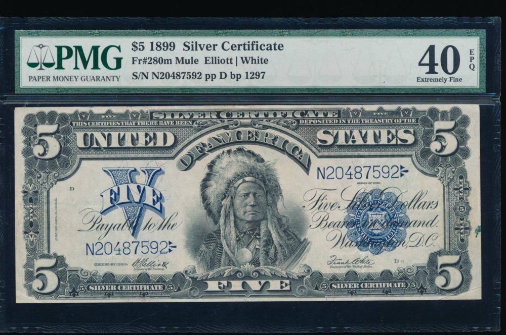 One 1899 $5 Chief Mule Silver Certificate PMG 40EPQ.