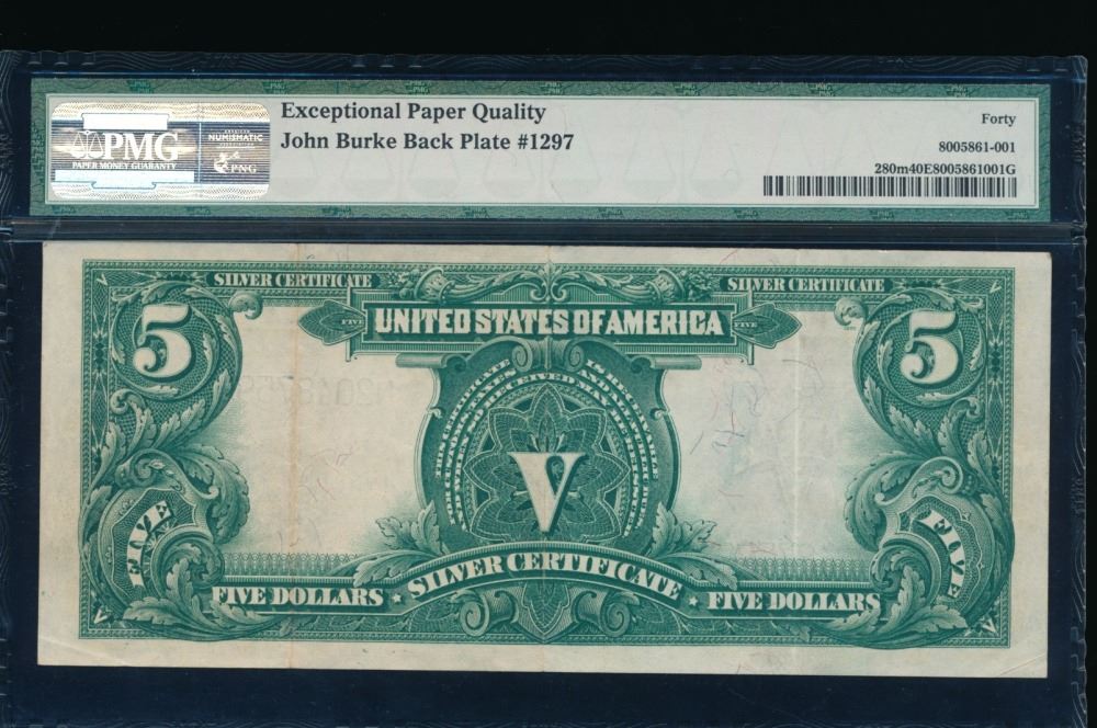 One 1899 $5 Chief Mule Silver Certificate PMG 40EPQ.