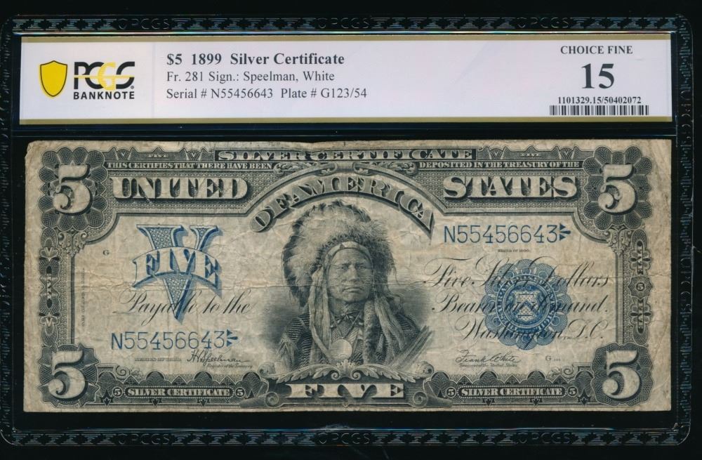 One 1899 $5 Chief Silver Certificate PCGS 15.