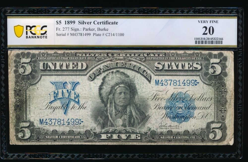 One 1899 $5 Chief Silver Certificate PCGS 20.
