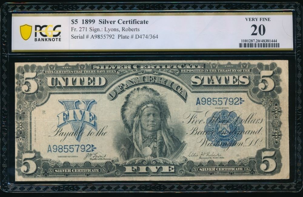 One 1899 $5 Chief Silver Certificate PCGS 20.