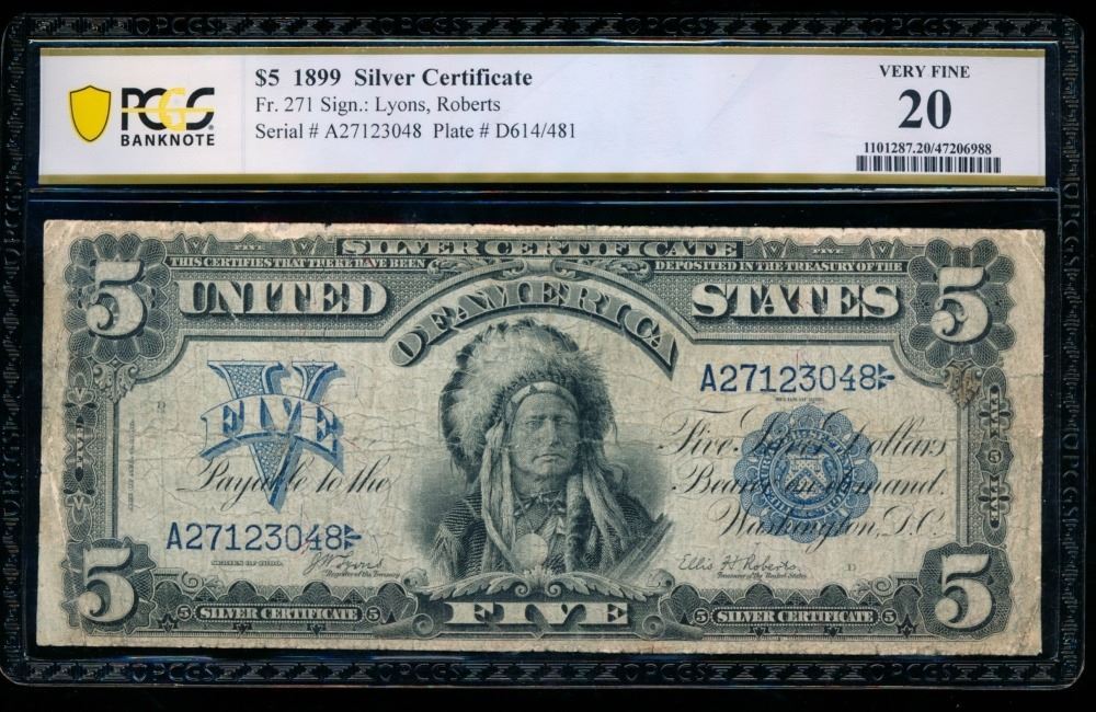 One 1899 $5 Chief Silver Certificate PCGS 20.