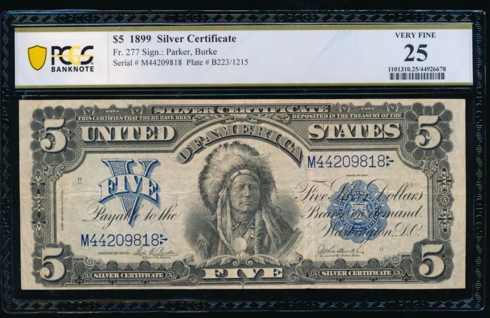 One 1899 $5 Chief Silver Certificate PCGS 25.