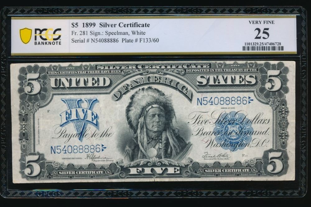 One 1899 $5 Chief Silver Certificate PCGS 25.