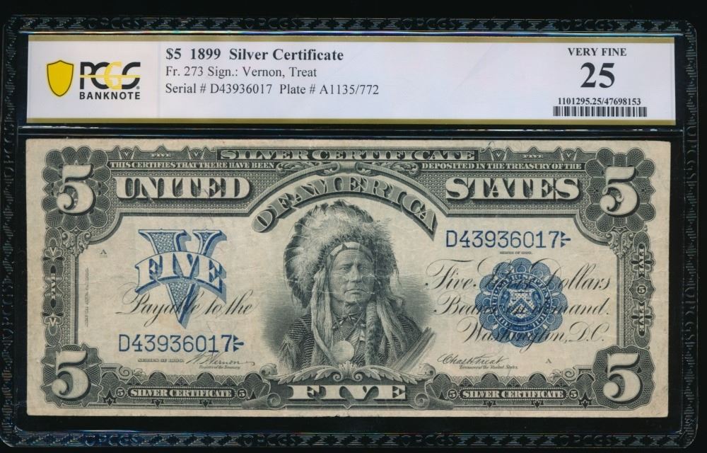 One 1899 $5 Chief Silver Certificate PCGS 25.