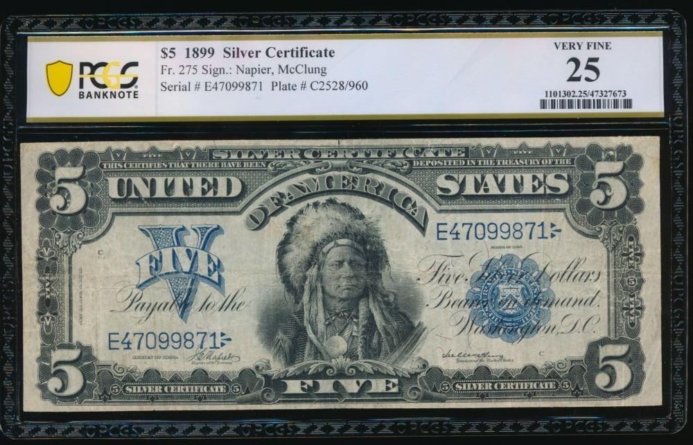 One 1899 $5 Chief Silver Certificate PCGS 25.