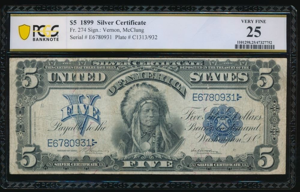 One 1899 $5 Chief Silver Certificate PCGS 25.