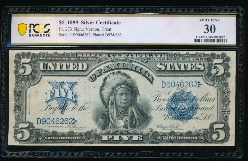 One 1899 $5 Chief Silver Certificate PCGS 30.