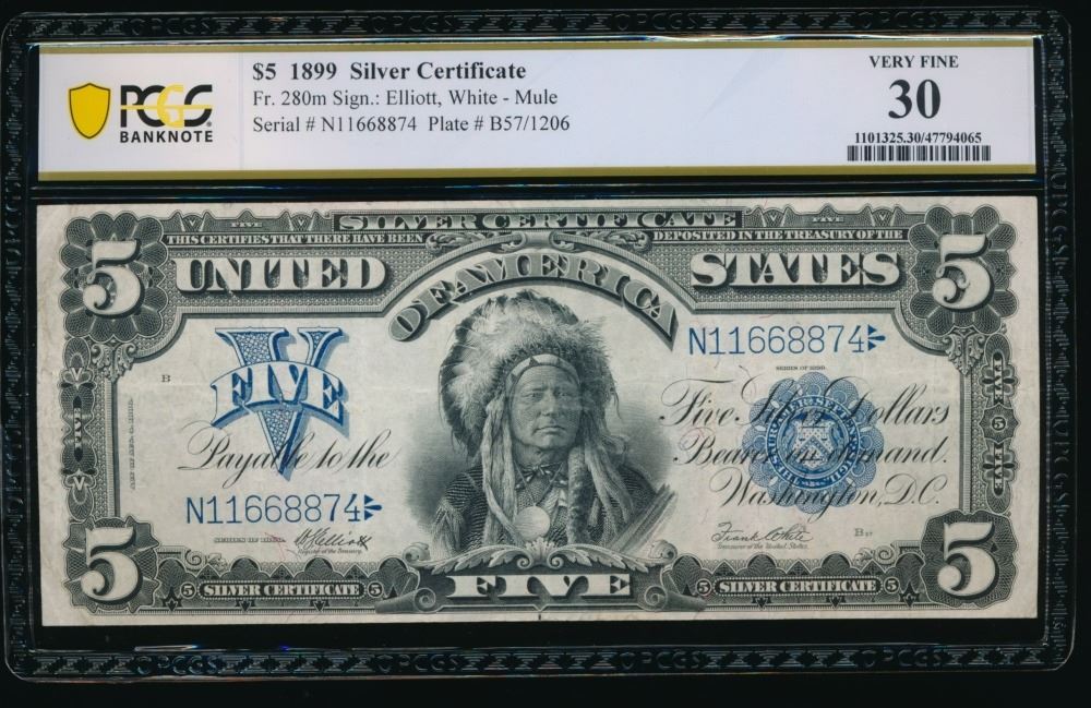 One 1899 $5 Chief Silver Certificate PCGS 30.