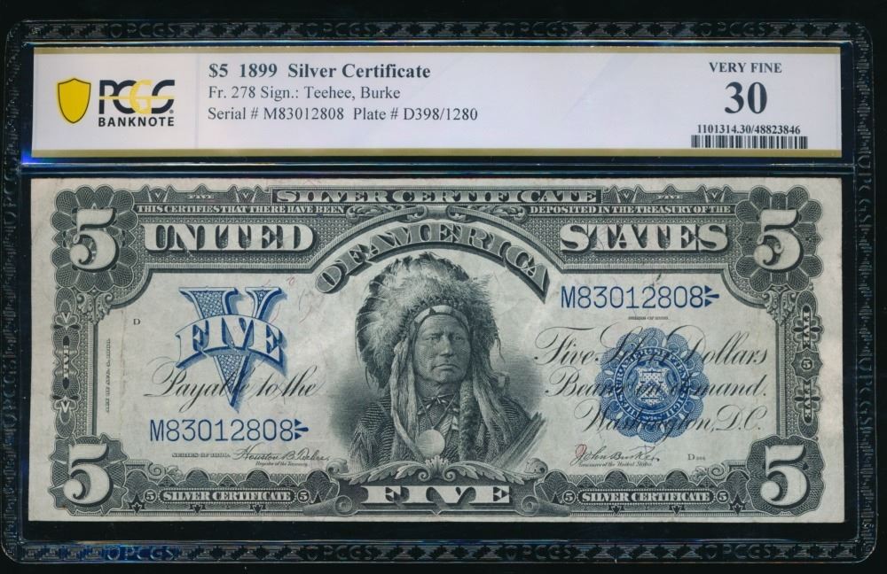 One 1899 $5 Chief Silver Certificate PCGS 30.