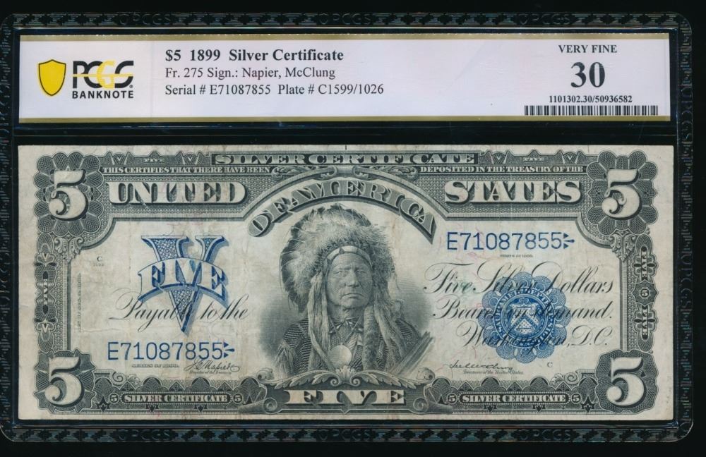 One 1899 $5 Chief Silver Certificate PCGS 30.