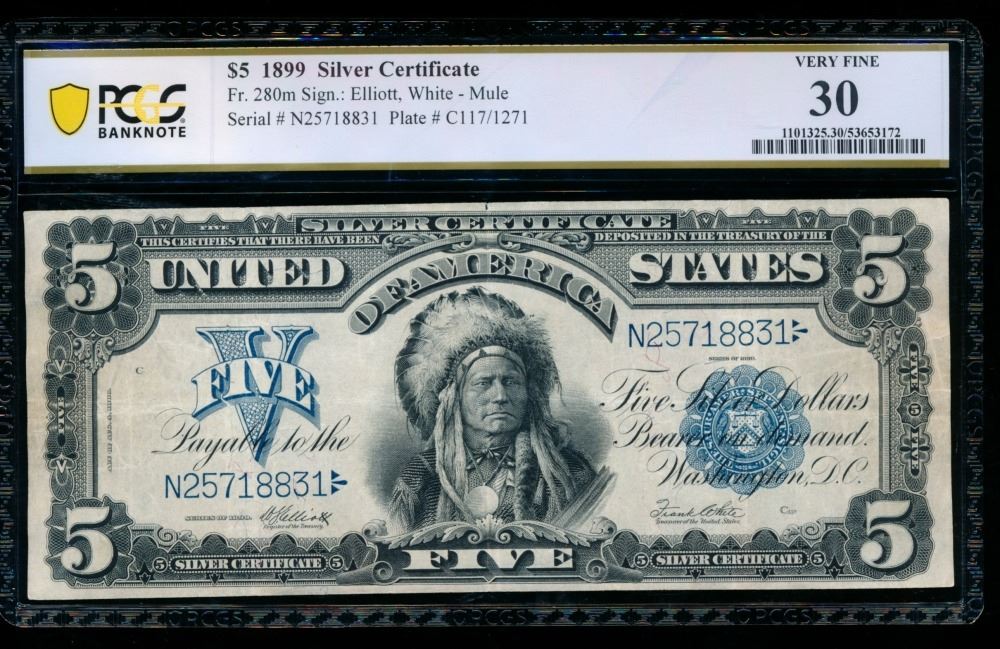 One 1899 $5 Chief Silver Certificate PCGS 30.