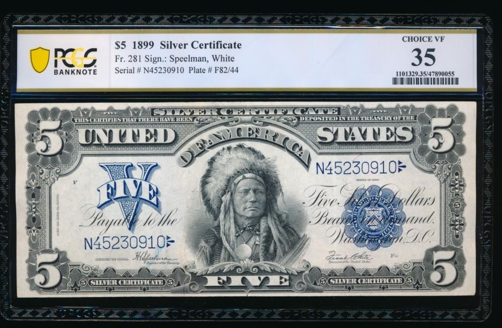 One 1899 $5 Chief Silver Certificate PCGS 35.