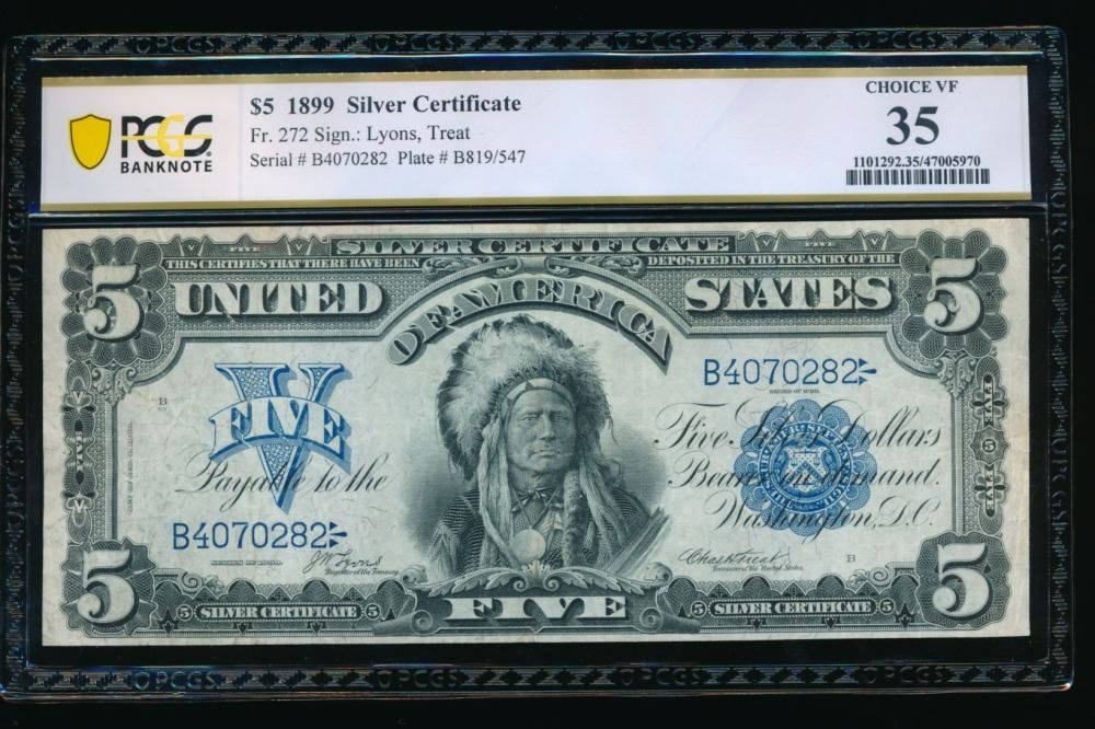 One 1899 $5 Chief Silver Certificate PCGS 35.