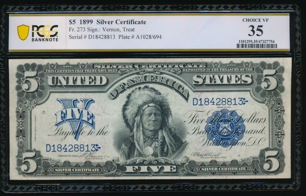 One 1899 $5 Chief Silver Certificate PCGS 35.