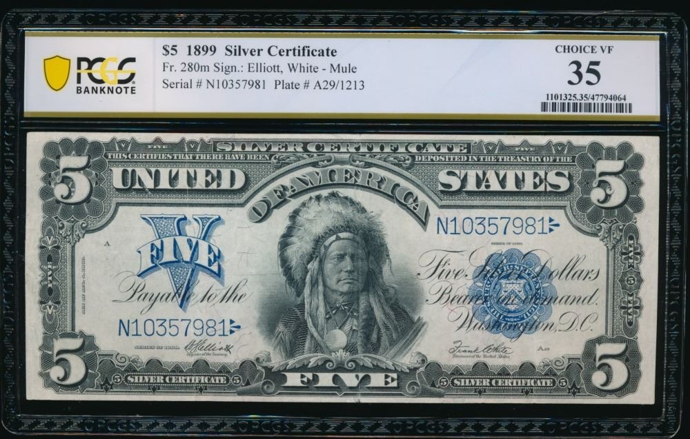 One 1899 $5 Chief Silver Certificate PCGS 35.