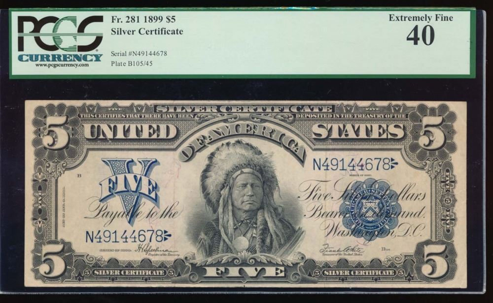 One 1899 $5 Chief Silver Certificate PCGS 40.