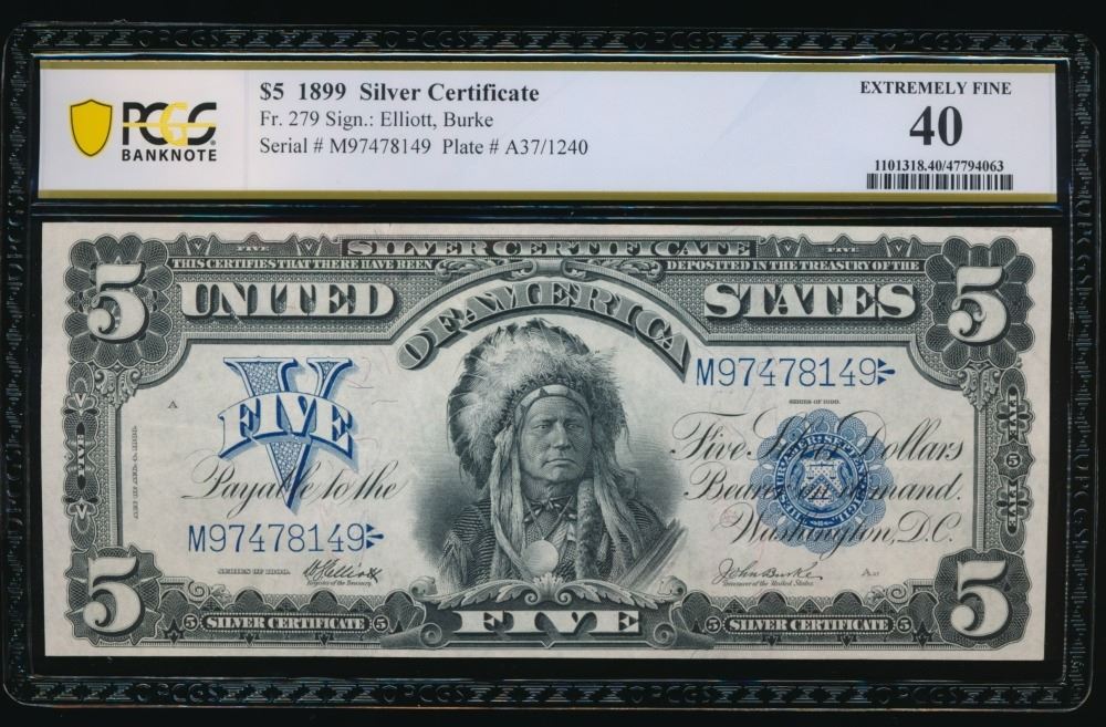 One 1899 $5 Chief Silver Certificate PCGS 40.