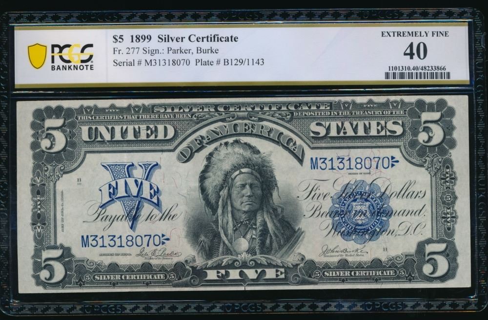 One 1899 $5 Chief Silver Certificate PCGS 40.