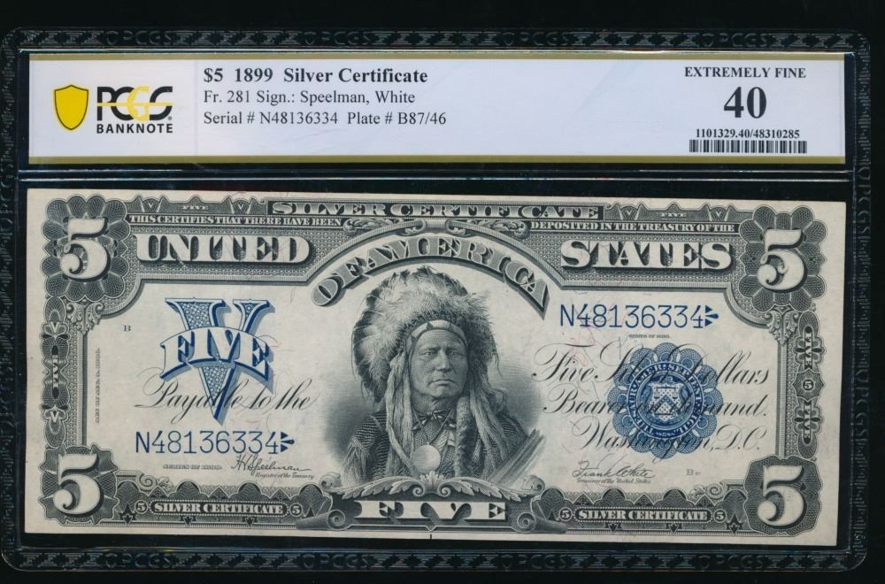 One 1899 $5 Chief Silver Certificate PCGS 40.