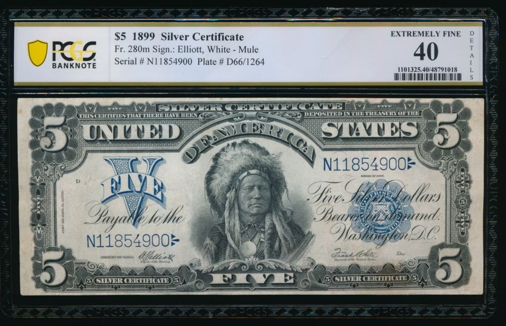 One 1899 $5 Chief Silver Certificate PCGS 40.