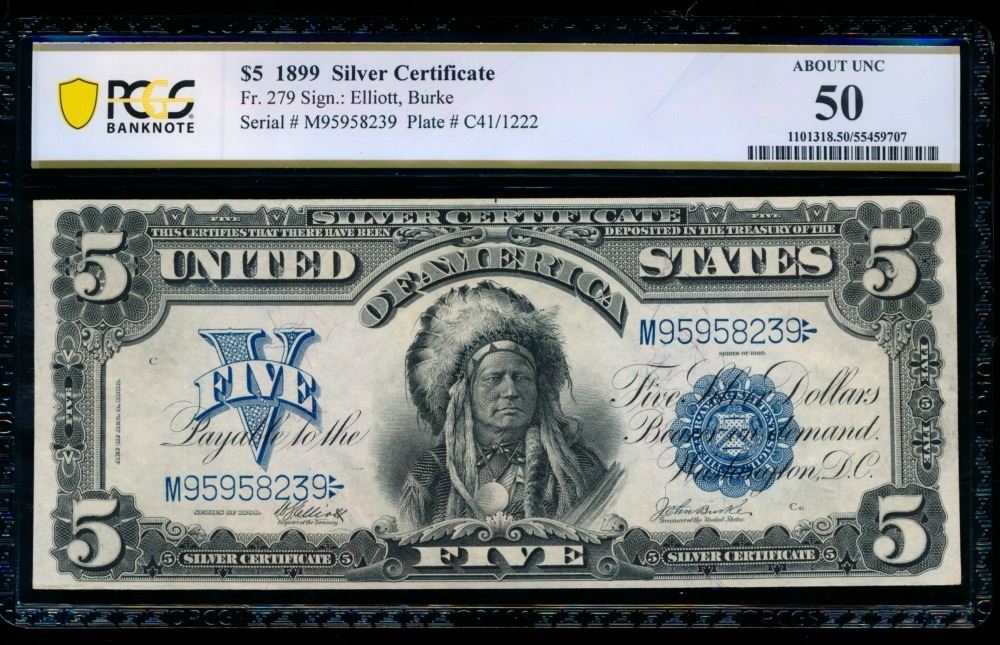 One 1899 $5 Chief Silver Certificate PCGS 50.