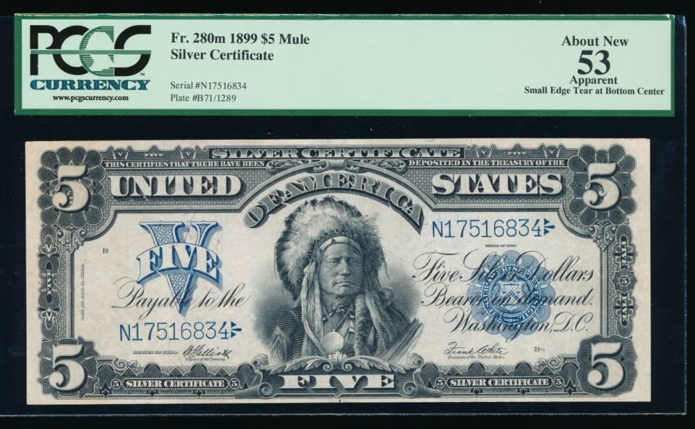 One 1899 $5 Chief Silver Certificate PCGS 53.
