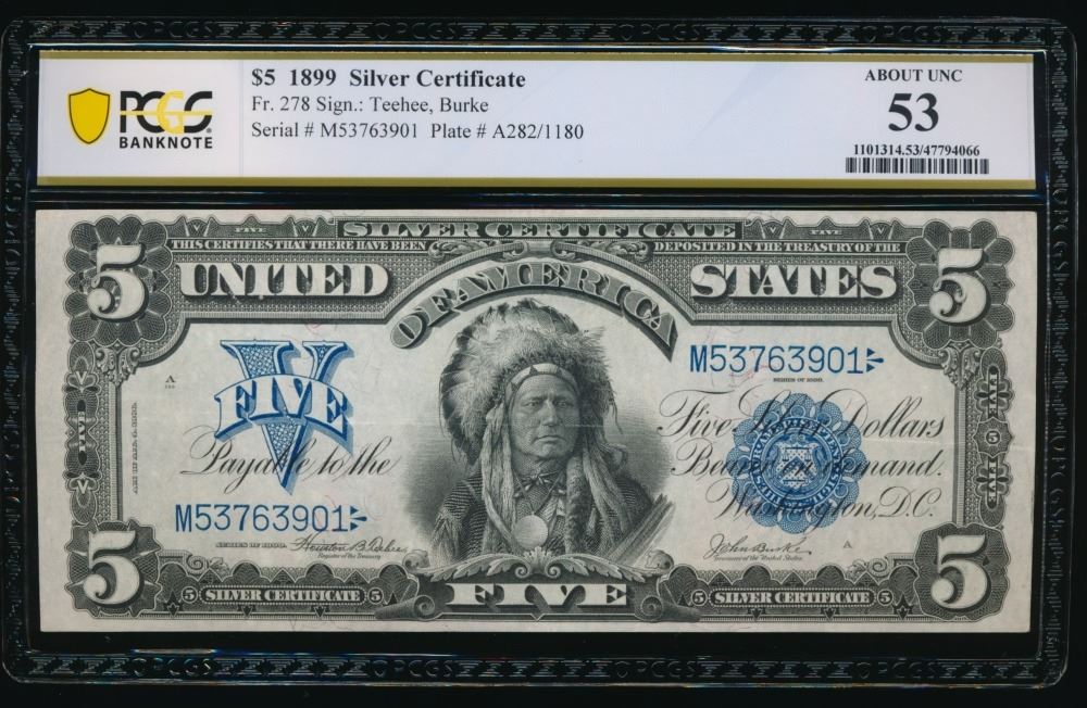 One 1899 $5 Chief Silver Certificate PCGS 53.