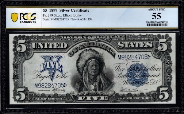 One 1899 $5 Chief Silver Certificate PCGS 55.