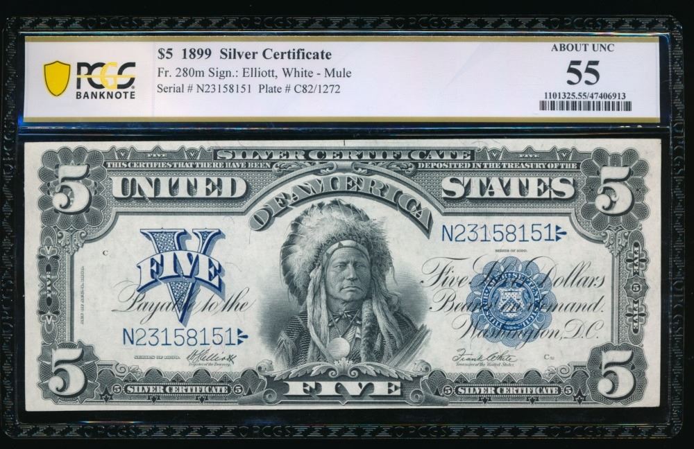 One 1899 $5 Chief Silver Certificate PCGS 55.