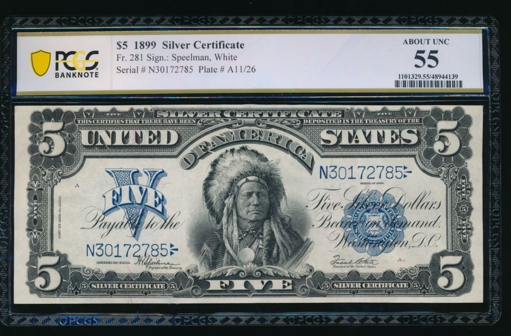 One 1899 $5 Chief Silver Certificate PCGS 55.