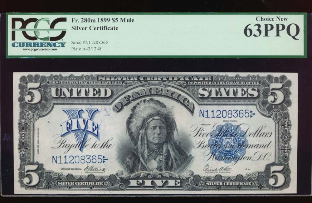One 1899 $5 Chief Silver Certificate PCGS 63PPQ.