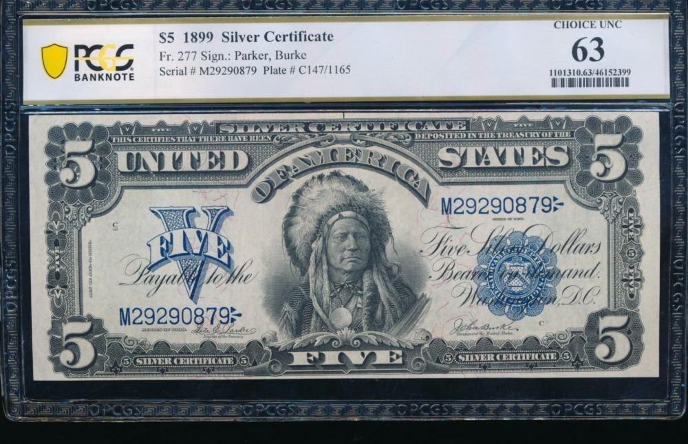 One 1899 $5 Chief Silver Certificate PCGS 63.