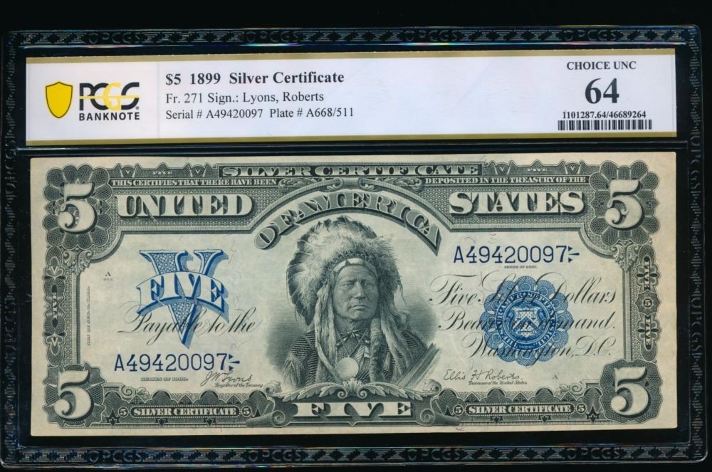 One 1899 $5 Chief Silver Certificate PCGS 64.