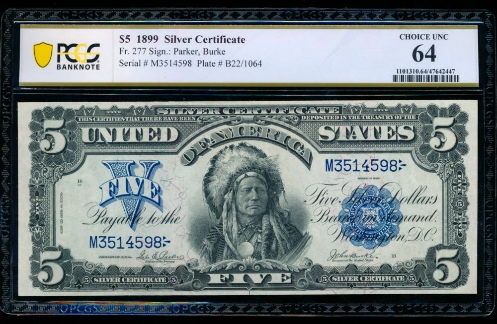 One 1899 $5 Chief Silver Certificate PCGS 64.