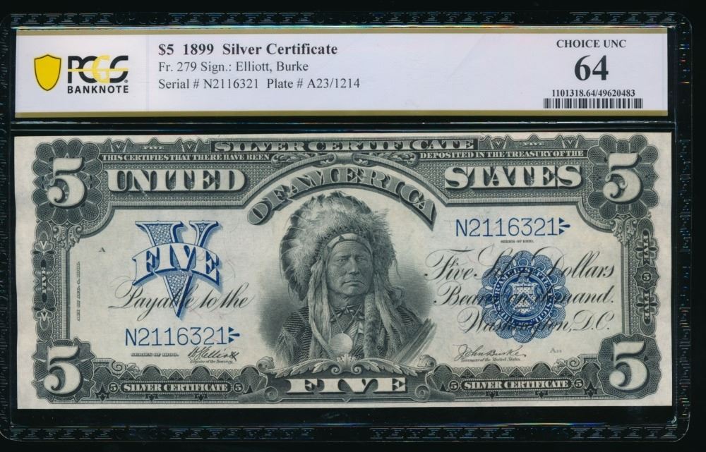 One 1899 $5 Chief Silver Certificate PCGS 64.